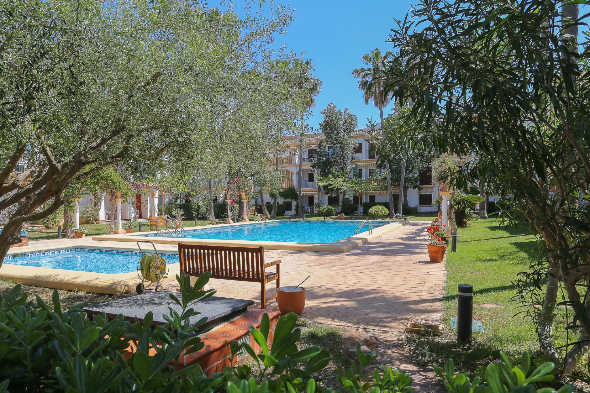 El Patio is conveniently located just 3 km from Denia’s center, offering easy access to the beach with a quick 5-minute walk. You’ll enjoy stunning views of Montgo mountain from here. This is well-maintained, exclusively for tenants and owners.