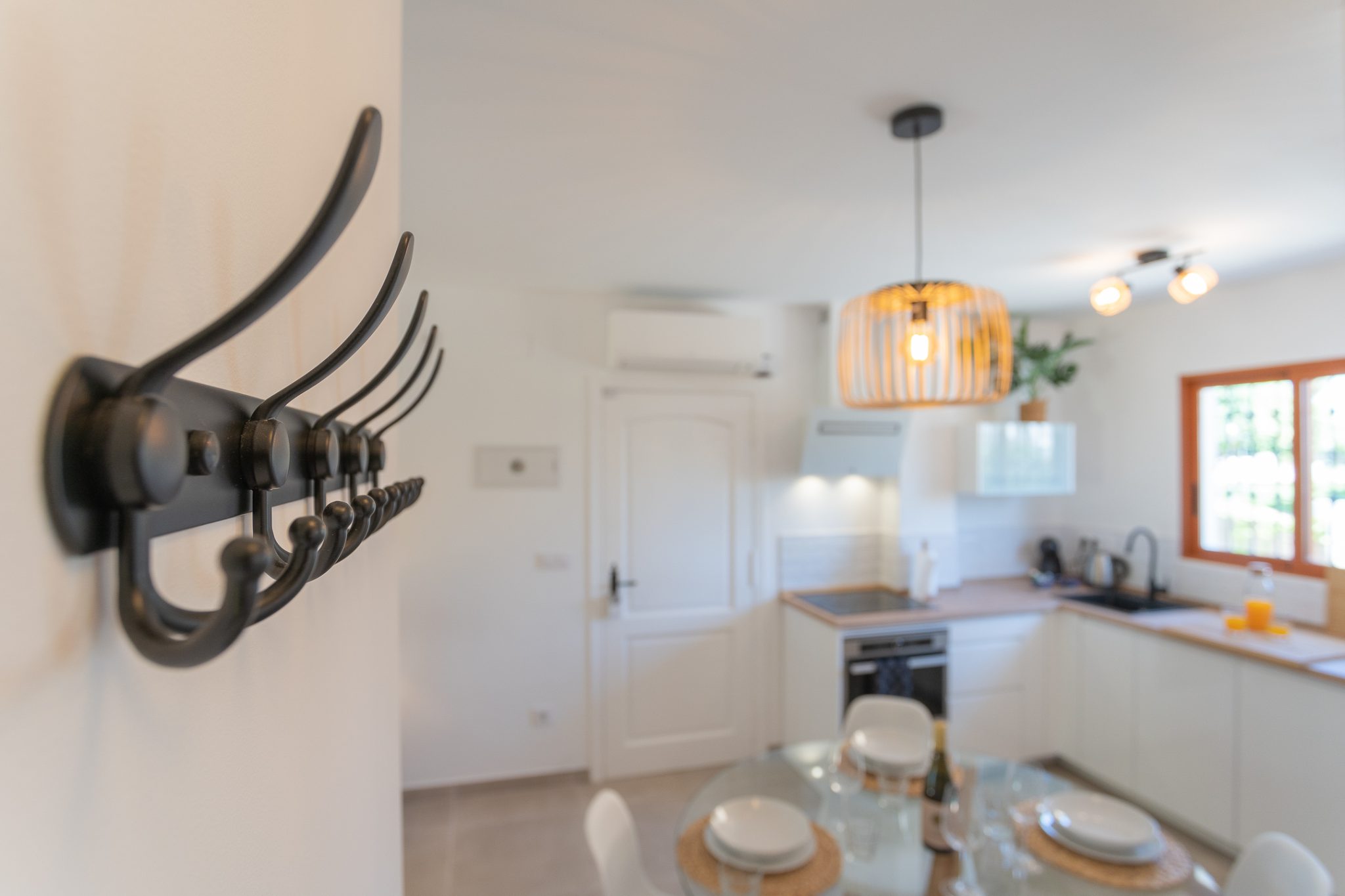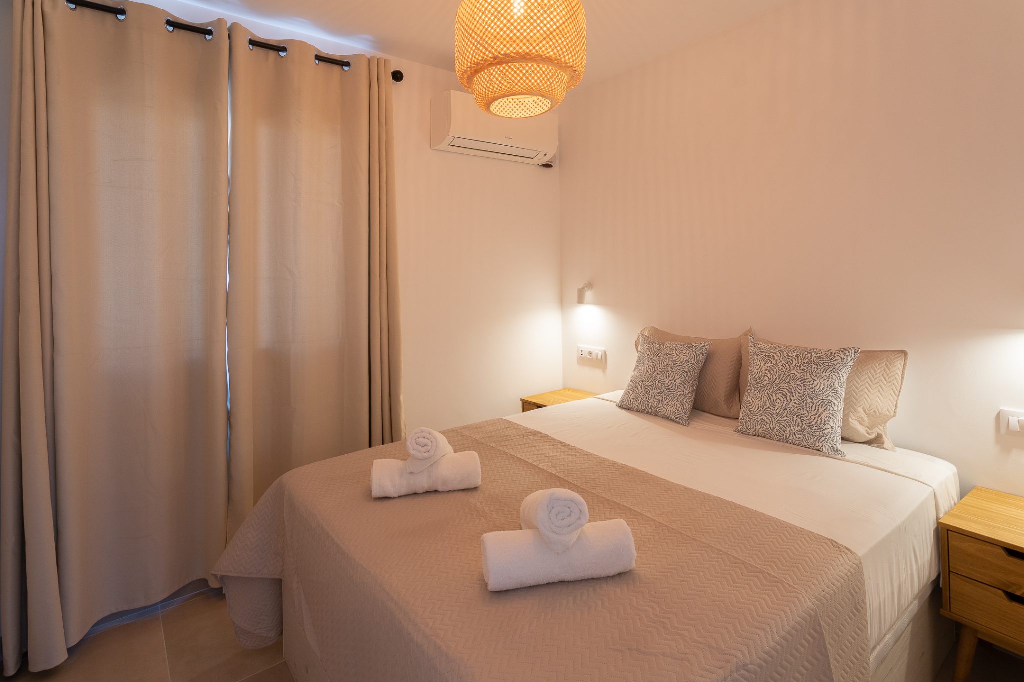 This enchanting apartment welcomes you with a warm and inviting ambiance. Upon entering the cozy living space, you’ll immediately feel at home. Step outside onto the spacious terrace and admire the stunning views of the lush garden and inviting pool. The proximity to the pool makes it easy to enjoy a refreshing swim or relax under the Mediterranean sun. Take the comfortable loungers to the pool or the nearby beach and unwind in peace.
